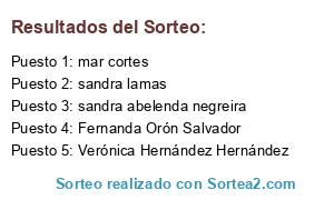 Lista de participantes: Flory Rico Calixto, loli garcia salinas, Maribel Otero castro, Jeanette Ferro Iborra, Lídia Gil Soler, isabel González González, isaac perez velazquez, Brisa Franco Pereda, yolanda Sanabria Rodríguez, susana lombardero, CRISTINA CAMPOS, Covadonga Reverte, Alberto Ruiz García, nieves piera jimenezd, afifa gamraoui, Astrid Alonso Fernandez, maribel clua Borrull, Maria Sastre, josé falcón Alonso Gil, javier romero culebras, Noelia Garcia, Francisco Martínez Durán, lorena roca hurtado, Estela Díaz, conchi rodriguez collado, manuel cardenete, Amparo Acedo Benitez, Noelia Tur Jurado, Iván Gámez Rubio, JOSE ANTONIO GARCIA MENDEZ, Jose Carlos garcia peña, LORENA PEREZ DOMINGUEZ, monica perez salas, Oletky Aparicio, cristina pintor lagos, Rocío Ramiro Gómez, Sara Lobo Guerra, raquel alapont vila, isa romero acosta, Izaskun Arribas Aguirrezabal, Noelia Paredes Fernández, Angela Zurdo Vega, Alberto Vidal Troitiño, Maria José Gonçalves Ramada, nayra perdomo lorenzo, Antonia Anton Anton, Raquel Saenz Garcia, ana zorrilla fernandez, María José Galán Ugartemendia, Andres Villalon Rodriguez, vanessa maria alonso andrade, begoña carrasco visto, Teresa García Alonso, María Esporas Placer, Sandra Martín Iñigo, Nuria Delgado Amo, Miren Josu Nebreda, SARA CIVICO CALLEJA, Alejandro Jaspe, estibaliz perez salas, maria jose guerrero jimenez, M. Eugenia L.M., lali osanz castan, veronica Molina, estibaliz martinez, ISABEL PADILLA BALBIN, Mara Teresa Domingo Muñoz, Marta Criado Juan, Isabel Najarro Uribe, monica valerogarcia, JESUS VIDA RUBIO, Mª Carmen Rueda Iranzo, ADRIAN GARCIA GARCIA, maria jose moreno de la peña, EVA Mª MORALEDA BLANCO, Jéssica Gutiérrez, María Piedad López López, laura Melian, Amaia Torres Sánchez, Azahara oliver grima, Sara Gauna, María Ángeles Nasarre Pérez, Miriam Guijarro Sotres, antonia pascual arjona, Luis Vicent Molins, encarni sanchez alanis, Héctor Nuñez Vilaboa, BLANCA VERINICA TURRILLO JIMENO, eva de diego gonzalez, Astrid Codina Rodriguez, Maria Sales Alegre, CRISTINA GÓMEZ, Amaia Velasco Castillo, Amparo Escudero Sanchis, VANESSA GARCIA ROLDAN, CRISTINA PASADAS RUBIO, almudena gayoso pazo, jessica jimenez garcia, Maria Angeles Hdez Antón, sandra garra roig, Ana Maria Arrarás del Haya, sol domenech rosello, ROSANA LLORET DE GRACIA, Jennifer Ugart Verde, Carolina Castrillo, Tamara Sánchez Pérez, María Gil Balanza, Silvia Rodríguez Polaino, jimena garcia, sandra gomera espinosa, luisa moreno de matias, Gemma Ortiz Sanchez, Rocío Clares, silvia vila masutier, sergio gonzález garcía, pilar Jiménez López, lourdes nuñez, Mª José Cortés Jiménez, Rosa Prieto Martinez, Eva Rodriguez Torrejimeno, MARIA ROSA ESPINOSA SUAREZ, ana moreno de matias, Ainhoa Ruiz Maeso, maria jose garcia martin, Verónica Calvo Martinez, Natàlia Cansado Olea, Paula Perez Franco, Silvia Novalbo, monica perez, montserrat almagro soriano, conchita estrada antolin, maria isabel arredondo, Gema Gómez Sánchez, MARIA DEL SOCORRO VELAZQUEZ GARCIA, Monique Boje Boje, Tatiana Calzón Alvarez, paqui amaya Pérez, Maria Jesus Ruiz Iñesta, CRISTINA ARIZA, lidia bautista sanchez, aurora Gavilan nieto, fina ibarra perez, veronica herrero bravo, Anna crivilles grau, Raquel Puentes, MAYKA MARTINEZ YRIARTE, Ana María González Otero, Eva Maria Urbano Serrano, Sbrina villella, Pilar Castelblanque Martinez, Marcela Liliana Ortega Lenis, Amparo Ubeda García, lourdes perna mena, silvia villalba, Anitry Saldaña, natasha oberoi, Natalia Canto Mesa, Lorena Jiménez González, Maria del Carmen Venegas, Carmen Arenal Carmona, m.del carmen ruiz alvarez, Rachel Mb, belen garcia serena, Nadia Campos Belmonte, Tomy Silva Galavis, Rosa Fernández Cámara, raquel belloch plasencia, Miquel angel Palou Padilla, Verónica Hidalgo Gil, Marta Lopez Ramirez, Lorena Iranzo Estrela, marjorie acosta medina, Gemma Borrallo González, Mihaela Zaharia, laura vallejo pamies, eather garrido Lucas, Belen Estevez Garcia, sandra abelenda negreira, maria coronada lemus aguilar, Monica Campi Padilla, noemi sauras, Sara Llorent, M.MONTSERRAT FLORES PEREZ, Estela Olivares Torres, christelle roquier, carmen cobo garcia, SILVIA ROMO SEN, Mª José Busto Cañamaque, Elena Pastor Polaino, Raquel Segura Guerra, Cristina Salaver Amaro, ana lacida dominguez, Noelia Figueredo González, Elisabeth Herrera, mireia rodriguez llovet, MATIAS MONAGO MERINO, Vanesa Vázquez Muñoz-Calero, Ana Rivera Muret, Noelia(en fb estoy como chica morena) López martinez, raquel paradinas jimenez, Isabel María Sánchez Escribano, Pedro De Isla Gonzalez, Quira Rodriguez Santana, alicia jimenez galvez, jose maria campos gonzalez, salud martin perez, Silvia Martín García, Carolina Marza clement, Gemma silva, RUTH MATEU PENA, Aroa Orihuela Vega, Susana Rodriguez Filgueira, maria jesus jimenez garcia, Blanca Prada Blanco, Marta Martinez Fernandez, María Isabel Acero López, Isabel Gasco Moreno, Patricia Toro Muriel, ANA BELEN HERNANDEZ GARRIDO, laia tarroja ruiz, Mar Bernabé Díaz, Carmen López López, Susana Garcia Gomez, Lidia Alonso González, MARIA DEL MAR ROCA MARCILLA, patricia camba fernandez, Sara Falco, francisco zarate castillo, Eva Ayllon, maria del carmen martin gonzalez, estefania ñiguez cortes, Carla Fernandez Casabella, Laura Sanchez Hernandez, Helena González rodriguez, ana cabello gonzalez, Ana María Macías Lozano, María Roig Juan, Marisa Ferrando zanon, Mayte C, teresa talavan cayo, Olaya González Abalo, Marisa Lopez, Elena Mora, virginia garcia lopez, Ana Isabel Moran Muñoz, Anabel Blesa, barbara garcia jimenez, MARIA CARMEN ALVAREZ MARTINEZ, Carlos Baragaño García, maria teresa linares cazalla, silvia fernandez gonzalo, Susana Garcia, ana maria chacon arriero, Carmen Cebrián, davinia parrado arminio, NOELIA ISASI DE ISASMENDI FERRUZ, georgiana dumitru, Maria teresa gomez garcinuño, Adilia Vallejo Sañudo, Raquel Herrera Raya, nuria lozano vidal, SHEILA RUEDA ESCUDERO, cec