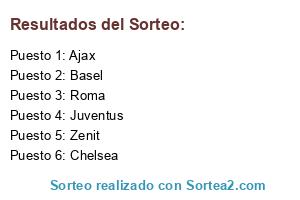 Lista de participantes: Basel, Zenit, Roma, Ajax, Chelsea, Juventus.