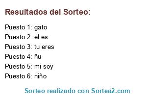 Lista de participantes: yo soy, mi soy, tu eres, el es, perro, gato, niño, ñu, lala.