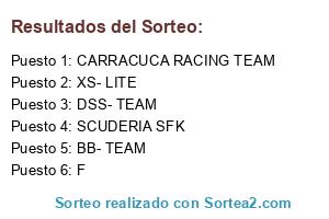 Lista de participantes: SCUDERIA SFK, BB- TEAM, XS- LITE, CARRACUCA RACING TEAM, DSS- TEAM, F.