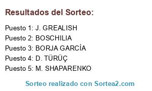 Lista de participantes: S. SESSÈGNON, I. POPOV, A. THOMASSON, B. DOČKAL, BORJA GARCÍA, L. IMMERS, D. TÜRÜÇ, B. CORGNET, LUCAS LIMA, R. EREMENKO, MARCIO MOSSORÓ, N. DE LA CRUZ, BOSCHILIA, V. BIRSA, J. GREALISH, NAM TAE-HEE, T. ROGIĆ, P. GROSS, E. REYNOSO, ÓSCAR RODRÍGUEZ, ANDREAS PEREIRA, S. SCHRIJVERS, ANDRÉ CASTRO, J. DÁTOLO, D. PELKAS, M. FERNÁNDEZ, M. ZAJC, M. GAĆINOVIĆ, A. MAXIM, L. ZUFFI, M. SHAPARENKO.