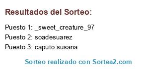 Lista de participantes: lau.alv93 (2), amaliazanetti56 (2), martanasatsky (2), rociotrinidad99, roohpedroso, romidcorrea, yesirua, angietahiis, gissecaistone, maiiii_ibarra, blancamargaritarauscher, loreesuarez80 (2), natt_fla (3), lilycarnero (2), latucu_77 (2), gabitta103 (2), maiii_styles (2), ayelenle (3), brisaabrilrivero, aarianamorgan (2), georgiandrea25 (3), maggieeyork (3), mirta1121, erygomez_, soadesuarez, _sweet_creature_97, karialeh, sabrinasol84, _.mica_cordoba, lalydejesus21 (2), micaelabusto (2), mariadelcarmen4522, nora.b73, manumalaga3, montiniv99 (2), fotojandra, machula22 (2), vir_2490 (2), mariarosaquiros4, eli_salto22, ro.sandra.ed, milagrosydylan, daniela_gisele, maritojg, caputo.susana, eglearguelles, yesiaranda_, ylmx07, noe.couto, jessii.franco, mirthanl, suarezmariiana._, maalecueva, macozaldivar, vero_cecilia, ftbarbara243 (2), paomillanv (2), fontana.marcela, valetorrillo, ro_cordobesa, zudairevalen, profssavaleria, sabrimaylenb, gabhiigonzalez, monicaescalon1, iara6844 (2), marian.diaz_, fernanda_soledad_alegre, varniu@cinbus15, varniu@villalba9802, soniamariel080969(2 participaciones), maricarmendepao, mariarosanoval, lulyydante, laura_veronica1, giselvietto, graciela_rossi, vitta_martinez, yaninafabiana, melisayasminper, miickiicabj, andylom_, tinacarpentieri1(2 participaciones), fede_beatriz, eugenia.rc, tatulambiase, soybelufernandez, isaleolulu, marianalucia32, victoriapifferi, sofiadanielac, julietasolis_ (2), jhomara_lira, naisbel_andreina, ayeleen_gaarciia, jorgelinafink, nathy_ledesma, laura.avalos.925, andigregoratti, paola.frias.336 (2), monica.pucheta.334, luciigonzaga, sophia.zoeh, naty5729, chii_chii_vt, marina.francalanza, martu.cmk (3), carbjl.maca, eriscolque3107.