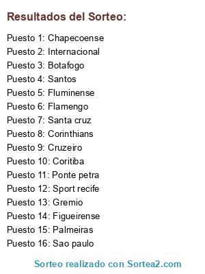 Lista de participantes: Palmeiras, Sao paulo, Santos, Sport recife, Cruzeiro, Fluminense, Santa cruz, Flamengo, Corinthians, Chapecoense, Botafogo, Internacional, Figueirense, Gremio, Coritiba, Ponte petra.