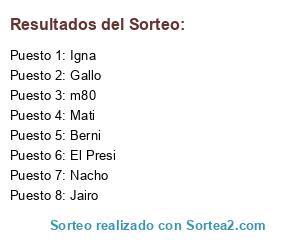 Lista de participantes: Gallo, Nacho, m80, Jairo, Igna, Mati, Berni, El Presi.