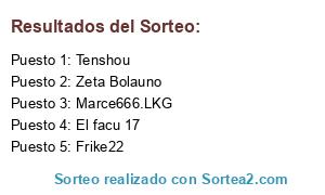Lista de participantes: ElAiel, Willian Corbo, Zeta Bolauno, POLOPEZ, Guillen, Tiburon Gato, Marce666.LKG, ivan.995, El facu 17, Arpatts, Miguelmh, Mariano F, Axeljohn, Sideblack, Tonga13, Gas2293, Giacossa78, Don Petete, Themonchito, Tenshou, Pasamusa, Raul Alfonsin, Odeoneus, Pokeras7, Grecoo, Frike22, Brendam, Montaguth.