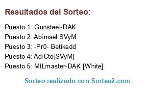 Lista de participantes: Abimael SVyM, AdiCto[SVyM], zafrada A&D, "†"A&D"†" Helios, Delacroix AyD, A&D Minos, †AyD†"Sasuke-KuN, -Pr0- Betikadd, "A&D"†" Helios, Darkcore-SVyM-, MILmaster-DAK [White], Gunsteel-DAK, Chivox-DAK [White], Shikamaru-DAK[White], †"A&D"†" Rey Mysterio.