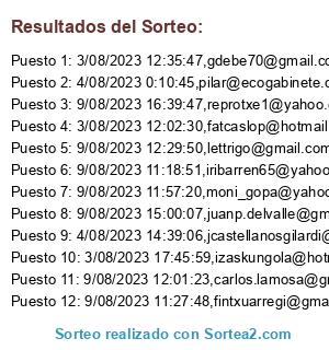 Este sorteo ha sido certificado por Sortea2. Sortea2 garantiza que: