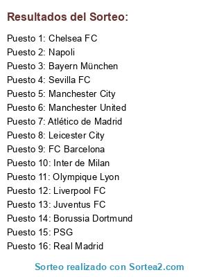 Resultados del sorteo: