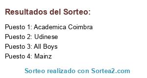 Lista de participantes: Mainz, Udinese, Academica Coimbra, All Boys.