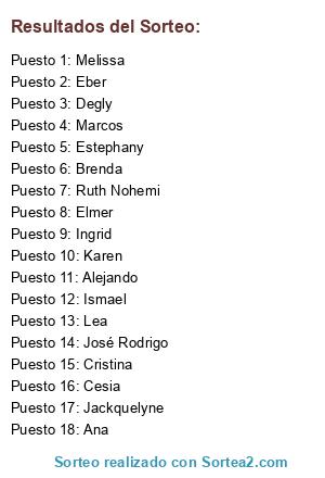 Lista de participantes: Brenda, Ruth Nohemi, Lea, Marcos, Degly, Jackquelyne, Eber, Ismael, Elmer, Ingrid, José Rodrigo, Karen, Cristina, Melissa, Ana, Alejando, Estephany, Cesia.