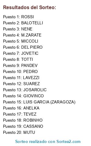 Lista de participantes: ROBINHO, TEVEZ, TOTTI, ROSSI, CASSANO, LAVEZZI, MICCOLI, BALOTELLI, M.ZARATE, SUAREZ, ANELKA, DEL PIERO, JOSAROLIC, PEDRO, LUIS GARCIA (ZARAGOZA), MUTU, GIOVINCO, JOVETIC, NENE, PANDEV.