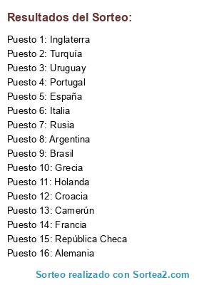 Lista de participantes: España, Brasil, Argentina, Francia, Italia, Alemania, Inglaterra, Portugal, Holanda, Croacia, Rusia, Turquía, Uruguay, Camerún, Grecia, República Checa.