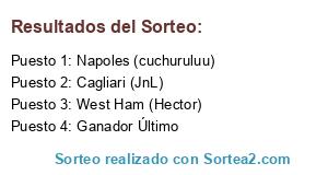 Lista de participantes: Napoles (cuchuruluu), Cagliari (JnL), West Ham (Hector), Ganador Último.