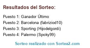 Lista de participantes: Palermo (Spoky99), Barcelona (fabriziod10), Sporting (Hijodelgordi), Ganador Último.