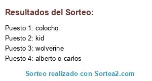 Lista de participantes: wolverine, colocho, kid, alberto o palo.