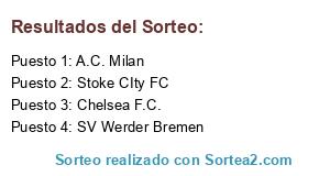 Lista de participantes: A.C. Milan, Stoke CIty FC, Chelsea F.C., SV Werder Bremen.