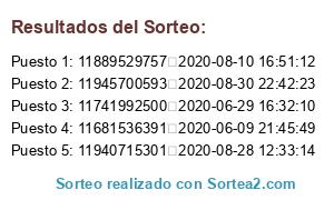 - 2020-09-08 14:49:33 (GMT): Se ejecuta el sorteo