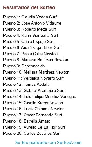 - Puesto 20: Carlos Zevallos Surf