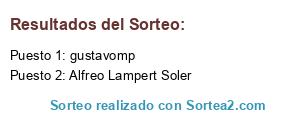Lista de participantes: gustavomp, jhon blake, dragondehierro, YingYowPai, Alfreo Lampert Soler, dheineken, rubdar, Penchi Penchola, warrior777, inferos, ichib, Lanza Mocos, .