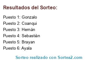 Lista de participantes: Hernán, Gonzalo, Ayala, Brayan, Coanqui, Sebastián.