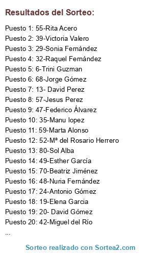 Accesibilidad del sorteo: El sorteo es público. Todo el mundo podrá acceder a él desde el listado de sorteos guardados.