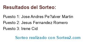 Lista de participantes: Tu Estilo Lencería Fina(3 participaciones), To?y Navarrete Martinez(-), Tito Jaspe(-), Sublimado Korrosivo(2 participaciones), Sandra Toledano(3 participaciones), Samuel Saborido Bautista(-), Ruben Mansanet Gomis(-), Raquel Lorden Diaz(-), Raquel Jimenez(-), Raquel Garcia(13 participaciones), Pilar Madrid(-), Patricia Villaca?as(3 participaciones), Pan Trigo Panaderia Pasteleria(-), Nico Garcia(-), Nerida Margolles Crespo(6 participaciones), Nardas Xadrán(-), Nagore Arostegui Rojo(-), Matilde Ojeda Martinez(-), Marisa Aparicio Martin(-), Marina Bel(-), Maria Martin Valencia(-), Maria Jose Martinez Gonzalez(15 participaciones), Maria Jose Garcia Martin, Maria Gamarra Marcos(-), Maria Colomo Diaz(14 participaciones), Maria Calleja M(5 participaciones), Mafertor Torneiro, Lydia Zornoza Diaz(-), Lucia Perez(11 participaciones), Lucia Luzbel Corbillo Pino(-), Loli Moreno Izquierdo(-), Loli Gonzalez Bejar(6 participaciones), Laura Ba Al, Lali Pujala(-), La Quinta Esencia(4 participaciones), Katerina Knyazhechenko(10 participaciones), Julian Cabanillas Vazquez(-), JP Martin(6 participaciones), Jose Andres Pe?alver Martin(7 participaciones), Jorge Guimaraes Parejo(6 participaciones), Johanna Paola Cruz Beltran(-), Jesus Fernandez Romero(11 participaciones), Isabel Ramírez(-), Irene Cid(2 participaciones), Francisca González Villarrubia(-), Eva Maria Diaz Hidalgo(5 participaciones), Eva Arias Navarro(-), Esperanza Rodriguez Arrocha(-), Diana P-a, David M. Martínez(6 participaciones), Cristina Piriz(-), Charo Romero Álvarez(4 participaciones), Cel Msc(6 participaciones), Carmen Rodriguez(6 participaciones), Carmen Fernandez(10 participaciones), Carmen Fernandez Fernandez(-), Carmen Castellano Juárez(4 participaciones), Buscador de Sorteos(-), Blanca Rodriguez(-), Ayna Trotamundos(0), Antonio Saborido Rodriguez(-), Antonio Fernandez(-), Angel Rivera Cordero(-), Ana María López Pérez(-), Ana Maria Cruz Perez(-), Alexandre Ors Pascual, Aldo Dimitrov(-), Abigail López(-).