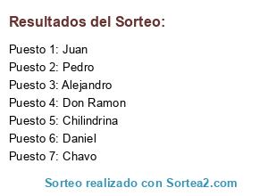 Lista de participantes: Alejandro, Pedro, Daniel, Juan, Chavo, Chilindrina, Don Ramon.