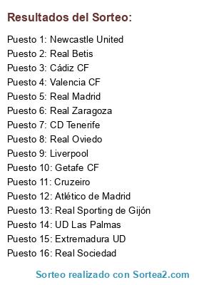 Lista de participantes: Atlético de Madrid, Cádiz CF, CD Tenerife, Cruzeiro, Extremadura UD, Getafe CF, Liverpool, Newcastle United, Real Betis, Real Madrid, Real Oviedo, Real Sociedad, Real Sporting de Gijón, Real Zaragoza, UD Las Palmas, Valencia CF.
