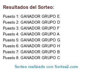 Lista de participantes: GANADOR GRUPO A, GANADOR GRUPO B, GANADOR GRUPO C, GANADOR GRUPO D, GANADOR GRUPO E, GANADOR GRUPO F, GANADOR GRUPO G, GANADOR GRUPO H.