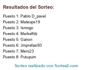 Lista de participantes: Ismogo, Jmprefasi93, Mateops19, Mero23, Ganon, Putupum, Pablo D_pavel, Markelfdz.