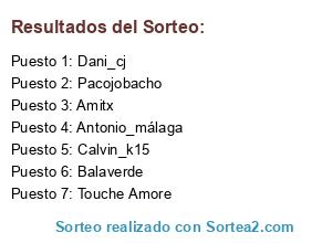 Lista de participantes: Antonio_málaga, Dani_cj, Calvin_k15, Balaverde, Touche Amore, Pacojobacho, Amitx.