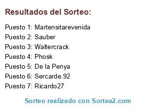 Lista de participantes: Waltercrack, Sauber, Sercarde.92, Ricardo27, Martensitarevenida, Phosk, De la Penya.