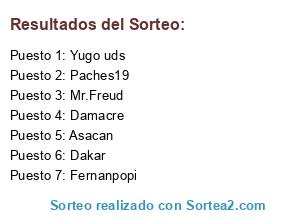 Lista de participantes: Dakar, Paches19, Fernanpopi, Yugo uds, Mr.Freud, Asacan, Damacre.