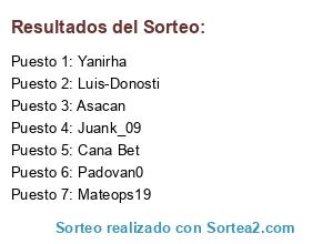 Lista de participantes: Cana Bet, Luis-Donosti, Yanirha, Asacan, Juank_09, Padovan0, Mateops19.
