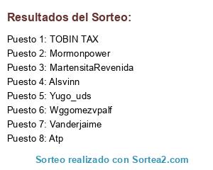 Lista de participantes: TOBIN TAX, Vanderjaime, Wggomezvpalf, Atp, Alsvinn, MartensitaRevenida, Mormonpower, Yugo_uds.