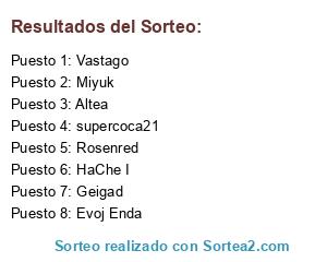 Lista de participantes: Agyard, aiden, Alexo, Altea, Andrew, Archaron, bamsu, Blackrose, Blath, Brundegor, c-kite, Creed, Darkelve, DonYo, Edu Aldo, Eilai, Elsa_Iberica, Evoj Enda, Ezrella, Fede, Furiana, Geigad, HaChe I, HaruVampire, HikariNightray, ignasificus, iPana, kamy valentine, KerHac, Kiara, lkilian, ll3craw, lmarc001, Lokko Garrider, Lomram Letsap, luis-vk, Lynopa, Lyuren, MEGATONY1983, Migg, mintheads, Miyuk, Niea.7981, Odiwan, Pacolopero, Perillitas, phicode, quimicoloco, Raist GWUniverse, Rosenred, RuSM.1620, Samwz, sâphi, Serinde, shinjuiko, SlaYer, Smallpox, Sttaria, Sunge, supercoca21, Sute, Theradrel.9047, Titan09, Tochi, Ulpio, Unyvos, vallejo, Vastago, vier fuentenegra, Zero Astral, zumodenabo.