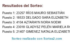 - Puesto 1: 23257 RÍOS MAURO SEBASTIÁN