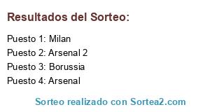Lista de participantes: Arsenal, Milan, Borussia, Arsenal 2.