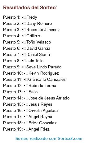 Lista de participantes: • Fallo, • Daniel Sierra, • Dany Romero, • Fredy, • Jesus Reyes, • David Garcia, • Angel Fdez, • Grillirris, • Robertito Jimenez, • Roberto Lerma, • Erick Gonzalez, • Kevin Rodriguez, • Orvelin Aguilera, • Toño Velasco, • Jose de Jesus Arriado, • Lalo Tello, • Giancarlo Carrizales, • Angel Reyna, • Seve Lindo Parado.