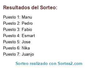 Resultados del sorteo: