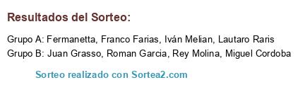 Lista de participantes: Lautaro Raris, Iván Melian, Fermanetta, Rey Molina, Miguel Cordoba, Roman Garcia, Juan Grasso, Franco Farias.