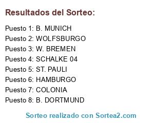 Lista de participantes: B. MUNICH, B. DORTMUND, ST. PAULI, SCHALKE 04, COLONIA, HAMBURGO, W. BREMEN, WOLFSBURGO.