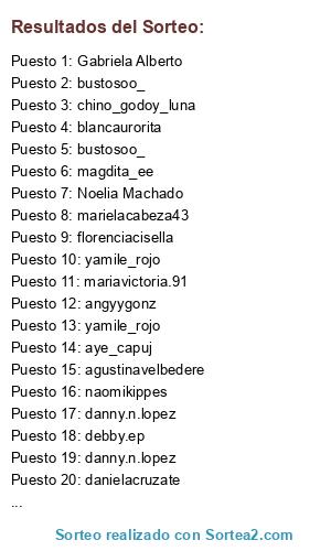 Lista de participantes: @josefina.deniz, @dana_nieva, @santamder.mili86, @ximenaok_, @caroo40, @vani_alv11, @vanii7775, @lourdesgarritsen, @flaagior91, @milyacosta, @m.a.v_23, @justina.botini, @noeliapujol1, @p.b.esca, @mimundogoloso_, @miliperno99_, @fiorellabasiniani_19, @benitezyesica_, @meli_recalde12, @roxanita._.az, @pinkyyahari, @vivisilva_27, @mariaebordon, @miafilipigh, @sonrieteva_agustar, @seylabin, @mayragonzalez8706, @beluinsaurraldes, @majo, @anahicaballer.00.