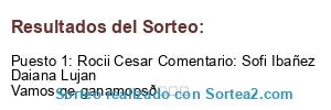 - Ganador: Rocii Cesar Comentario: Sofi Ibañez Daiana Lujan Vamos qe ganamoos🍀