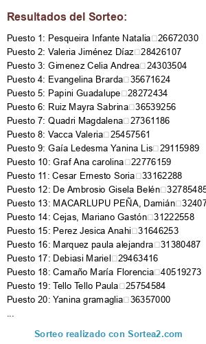 Resultados del sorteo: