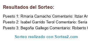 - Ganador 1: Rmaria Camacho Comentario: Itziar Arrausi gracias