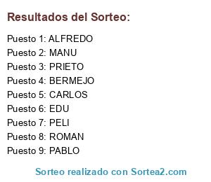 Lista de participantes: BERMEJO, ALFREDO, MANU, PABLO, ROMAN, PRIETO, CARLOS, PELI, EDU.