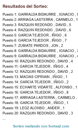 - Puesto 1: GARRALDA BIDAURRE , IGNACIO , 5