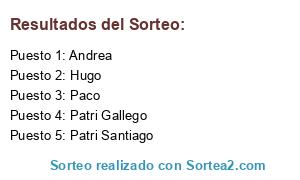Lista de participantes: Paco , Hugo , Andrea , Patri Gallego , Patri Santiago.