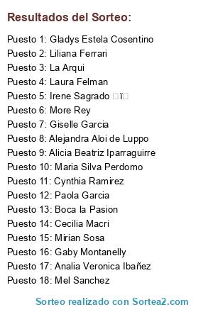 Lista de participantes: Gaby Montanelly, Liliana Ferrari(2 participaciones), Giselle Garcia, Mirian Sosa(2 participaciones), More Rey(2 participaciones), Cecilia Macri, Gladys Estela Cosentino, La Arqui(2 participaciones), Mel Sanchez(2 participaciones), Analia Veronica Ibañez, Boca la Pasion, Alicia Beatriz Iparraguirre(2 participaciones), Alejandra Aloi de Luppo, Paola Garcia(2 participaciones), Cynthia Ramirez(2 participaciones), Irene Sagrado ʚïɞ, Laura Felman, Maria Silva Perdomo.